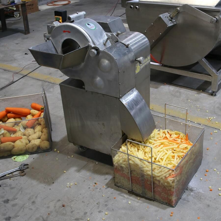 This application demonstrates the machine’s adaptability to different root vegetables and processing environments.