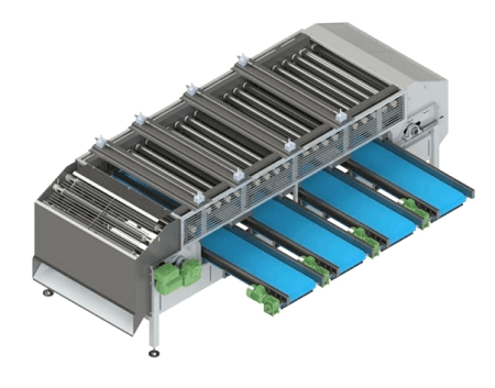 This roller sorting machine is designed for accurate sorting of root vegetables and fruits by diameter. It is ideal for products such as sweet potatoes, carrots, celeriac, and beets, delivering consistent and reliable results even in high-capacity production environments.